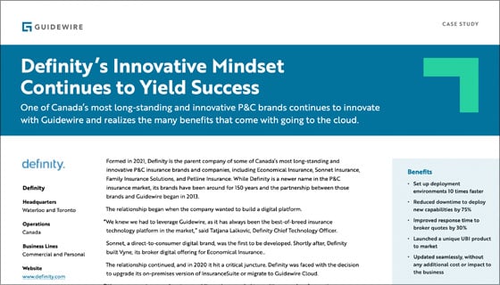 Definity, which had been a Guidewire customer since 2013, decided to expand its relationship by migrating to InsuranceSuite on Guidewire Cloud.