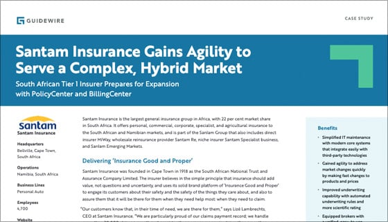 "The expansion of our Guidewire relationship supports Santam’s strategic focus to simplify and rationalize our core processes,” said Kevin Wright, CIO at Santam.