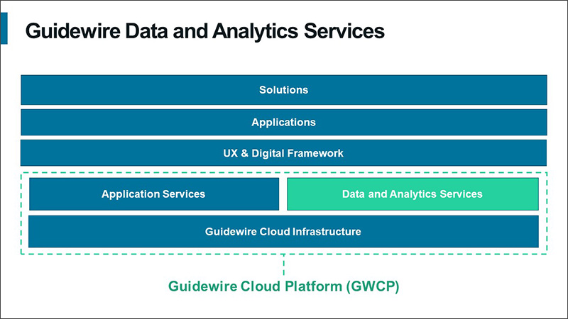 The foundational component in the marketecture is Guidewire Cloud Platform (GWCP)—a collection of value-added infrastructure and common services that powers Guidewire’s applications and solutions. This includes Data and Analytics Services that enable insurers to leverage their own data, accelerate time-to-insight with data curation, and power closed-loop analytics to turn innovative ideas into results. To better understand this, let’s drill down into this layer. This reveals the most complete P&C data platform delivered as a cloud service.