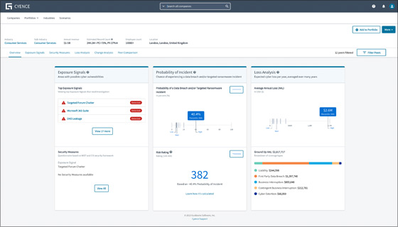 • Next-generation loss distribution modeling to calculate comprehensive probabilistic cyber risk profiles.